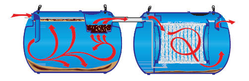 Dzięki temu systemowi większość ścieków przechodzi dwa razy przez system.