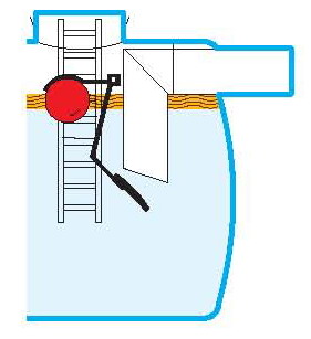 Przewód wylotowy zamykany jest zaworem połączonym z pływakiem