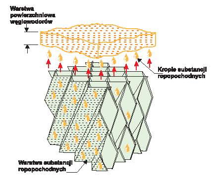 przez cały czas za zwiększającą się warstwą węglowodorów