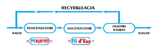 Ścieki wychodzące z Fil d' Eau są "przechwytywane" przez pompę recyrkulacyjną i odsyłane do wlotu osadnika. Dzięki temu systemowi większość ścieków przechodzi dwa razy przez system.