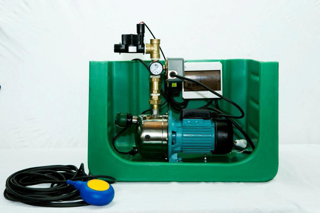 Woda deszczowa zasysana jest ze zbiornika i kierowana do systemu sterująco –